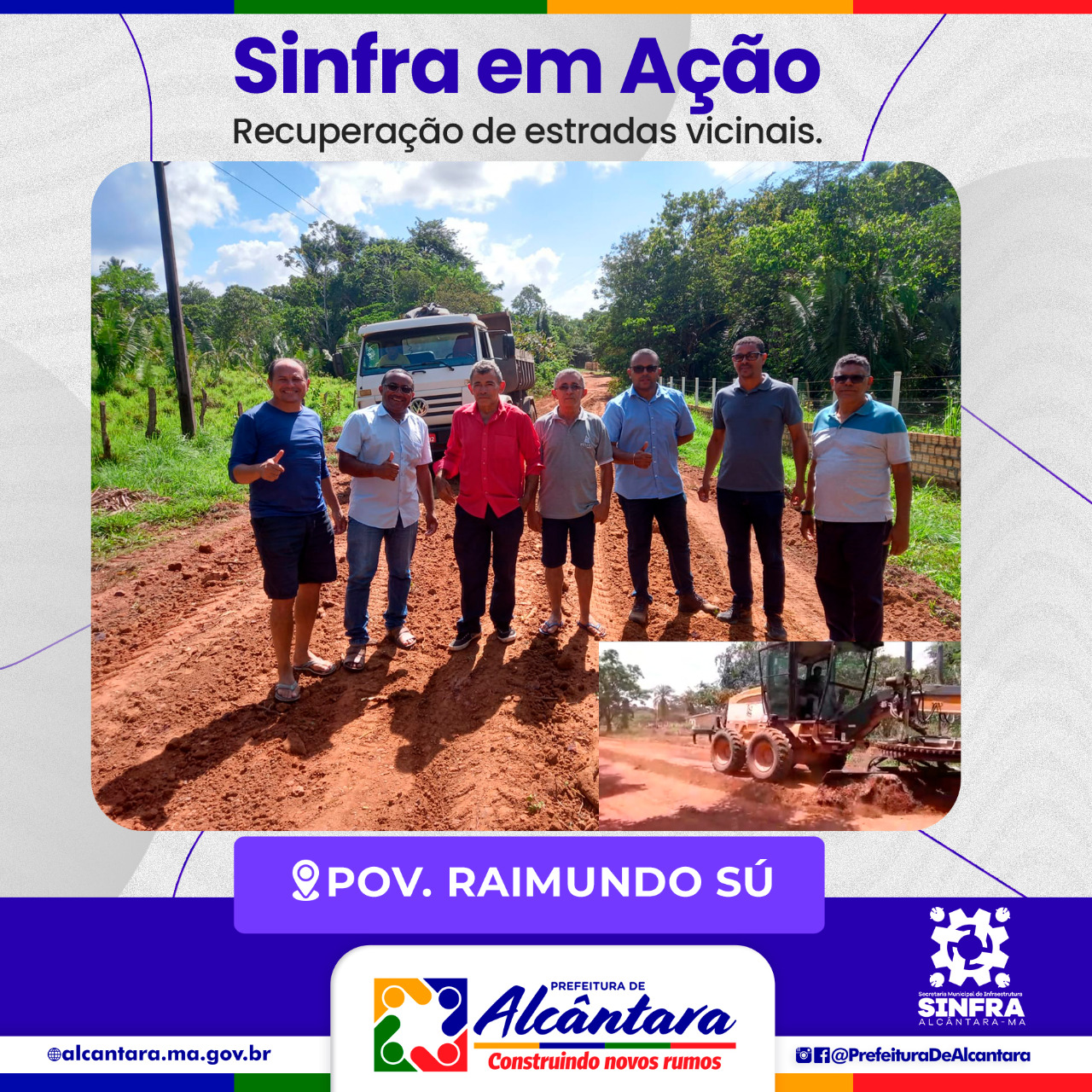 O município de Alcântara possui aproximadamente 200 comunidades com uma malha vicinal de mais de 800 quilômetros de estradas. De acordo com o prefeito Nivaldo Araújo, a Sinfra monitorou as condições das estradas e em seguida montou uma força tarefa para levar melhorias a todos os povoados e vilas.
