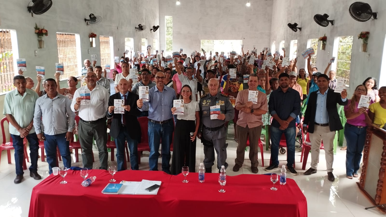 pA reunião, realizada na Igreja Assembleia de Deus do bairro Cidade Nova, reuniu centenas de moradores do bairro Cidade Nova e contou com as presenças do prefeito de Bequimão, João Martins; de secretários municipais; representante do Cartório de Bequimão, Rogério Araújo, do representante do Tribunal de Justiça do Maranhão (TJ-MA), Dr. Daniel Pereira de Souza; e da representante do Núcleo de Governança Fundiária da Corregedoria Geral de Justiça (CGJ-MA), Dra. Bianca Paiva. A iniciativa tem, ainda, o apoio do Consórcio Intermunicipal da Floresta dos Guarás (Conguarás).