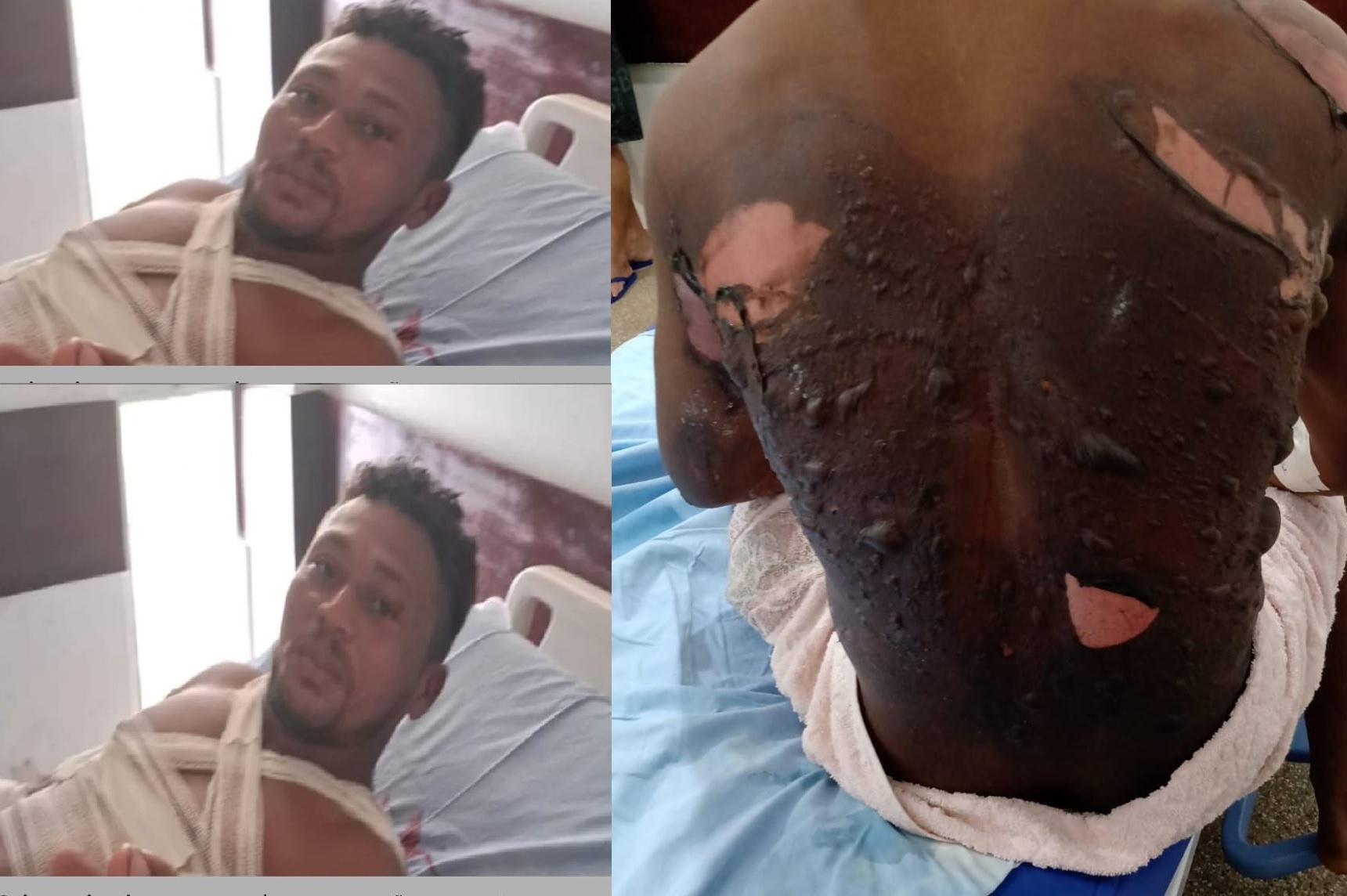 De acordo com informações repassadas ao G7, Ribica trabalha com venda de carne de porco no Mercado Muncipal de Bequimão. Na última sexta-feira (28), quando ele estava preparando um porco para venda da carne, acabou escorregando, caindo em uma panela de água quente, que acabou queimando suas costas, deixando em estado grave, como mostra a imagem abaixo.