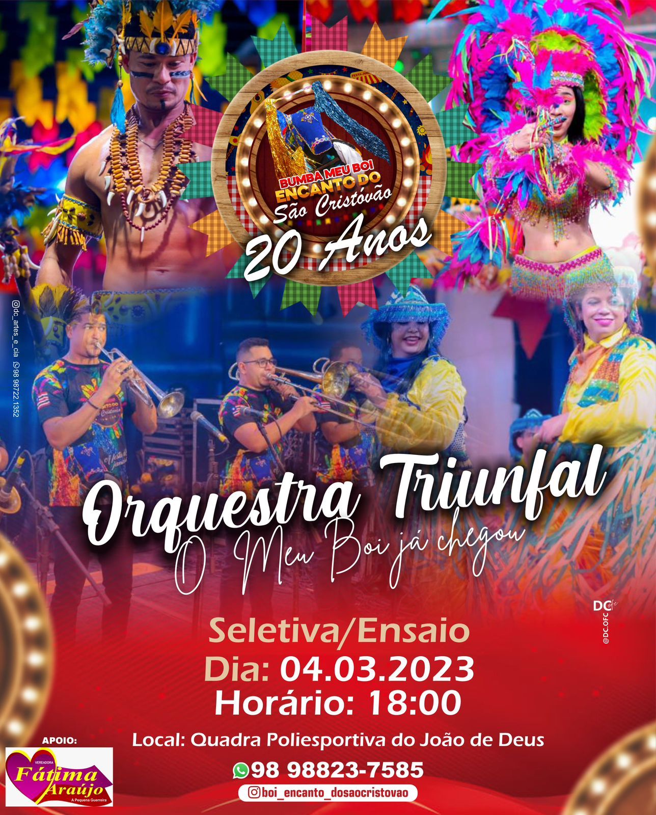 Neste próximo sábado, dia 04, a partir das 18h, o Boi Encanto do São Cristóvão vai realizar uma seletiva para novos integrantes para temporada junina de 2023. A seleção dos membros do novo corpo de baile, vai acontecer na quadra poliesportiva da praça da Juventude do bairro João de Deus, comunidade onde com o apoio da vereadora de São Luís, Fátima Araújo (PCdoB), o Encanto passará a realizar todos os seus ensaios.
