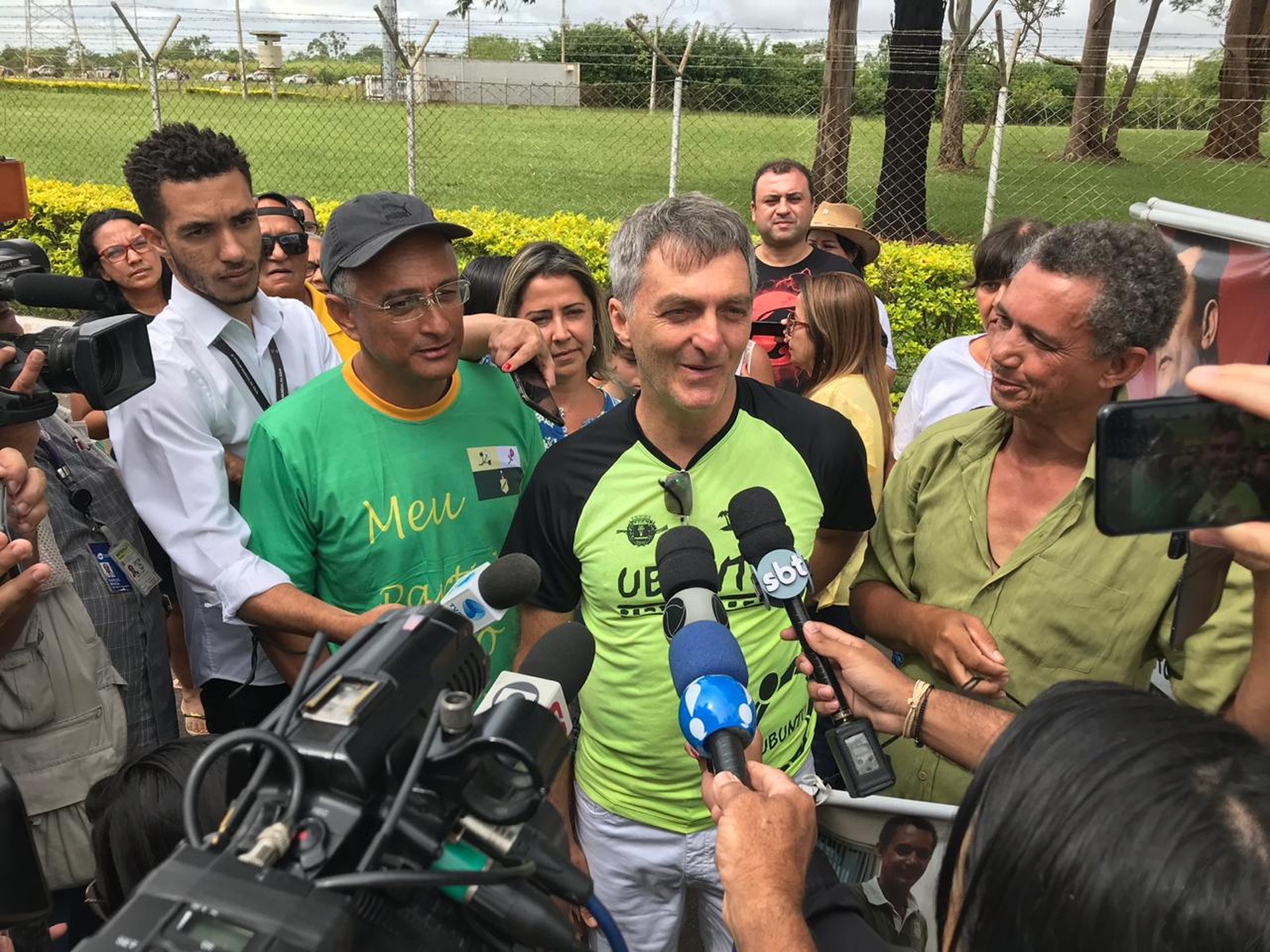 Renato deixou as dependências da granja por volta das 10h40 para conversar com um grupo de dezenas de apoiadores do presidente eleito que se aglomerava na entrada da residência oficial. Ao se aproximar dos simpatizantes de Bolsonaro, foi tratado como celebridade, posando para selfies e gravando vídeos.