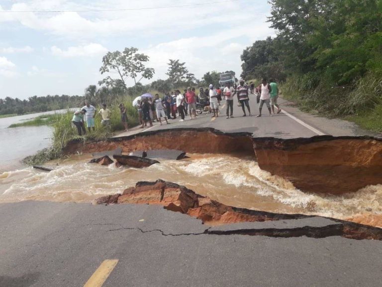 Uma erosão provocada pelo rompimento de um açude cortou totalmente a BR-316, no Km-189, no povoado Cocalinho, alguns quilômetros após a cidade de Zé Doca e a entrada para Pedro do Rosário.
