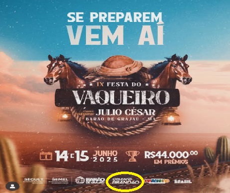 É importante destacar que a Festa do Vaqueiro foi organizada pela pela Prefeitura de Barão de Grajaú, por meio Secretaria de Cultura (Secult), com apoio da Semel e dos Governos do Estado e Federal. No entanto, o nome do verdadeiro responsável pelo investimento público no evento — o secretário de Cultura — sequer apareceu nas peças de divulgação. Quem ganhou destaque foi Orleans Brandão, que sequer tem responsabilidade administrativa direta sobre eventos culturais.