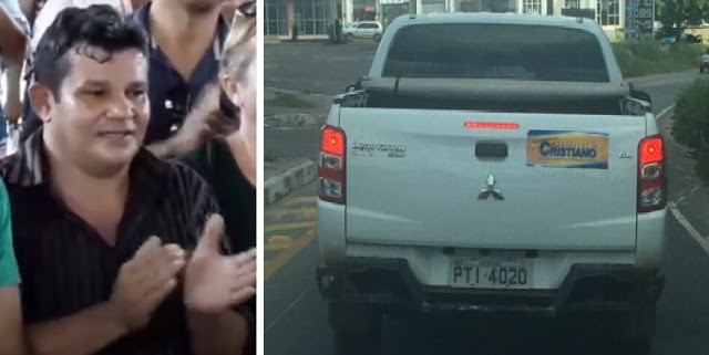 De acordo com o denunciante, o cidadão conhecido como Deputado Internacional, morador da comunidade Bom Jardim, estaria usando o veículo para realizar a pré-campanha do líder de governo na Câmara, vereador Professor Cristiano, que tentará a reeleição.