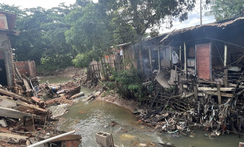 Um temporal que caiu na última quarta-feira (15), em São Luís, derrubou três casas, deixando pelo menos 15 pessoas desabrigadas nas ruas 6 e 7, no bairro Pirapora, na capital maranhense. Por conta dos fios de energia quebrados, uma das três casas inclusive chegou a pegar fogo durante o sinistro e por pouco não casou uma tragédia maior.