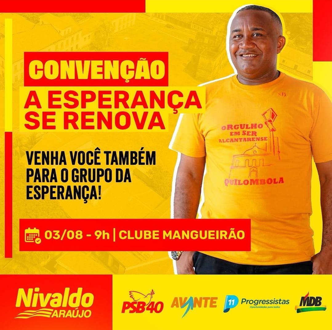Em sua rede social, Nivaldo Araújo fez um convite especial aos alcantarenses que desejam a continuidade do bom trabalho que está sendo realizado com responsabilidade. “Temos o prazer de convidar a população alcantarense para a nossa convenção. Será um momento especial onde a esperança se renova para juntos continuarmos avançando. Contamos com a sua presença para fortalecer ainda mais o compromisso com o futuro da nossa Alcântara”, descreveu Nivaldo Araújo.