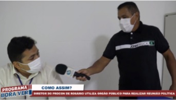 A reportagem da Rede TV, comandada pelo repórter Carlos Afonso, teria recebido várias denúncias de que a unidade do Procon em Rosário teria sido transformada em uma espécie de “comitê eleitoral” em pleno período de expediente. Na manhã desta terça (22) a equipe se dirigiu à unidade para averiguar a denúncia.