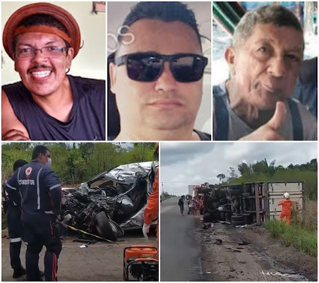 Os mortos foram identificados como Francisco Vieira da Silva, de 76 anos, Reynaldo Carlos Cerqueira Silva, de 44 anos, pai e filho, respectivamente, ocupantes do Renault Duster, e Daniel Ferreira Dias, de 38 anos, motorista do caminhão.