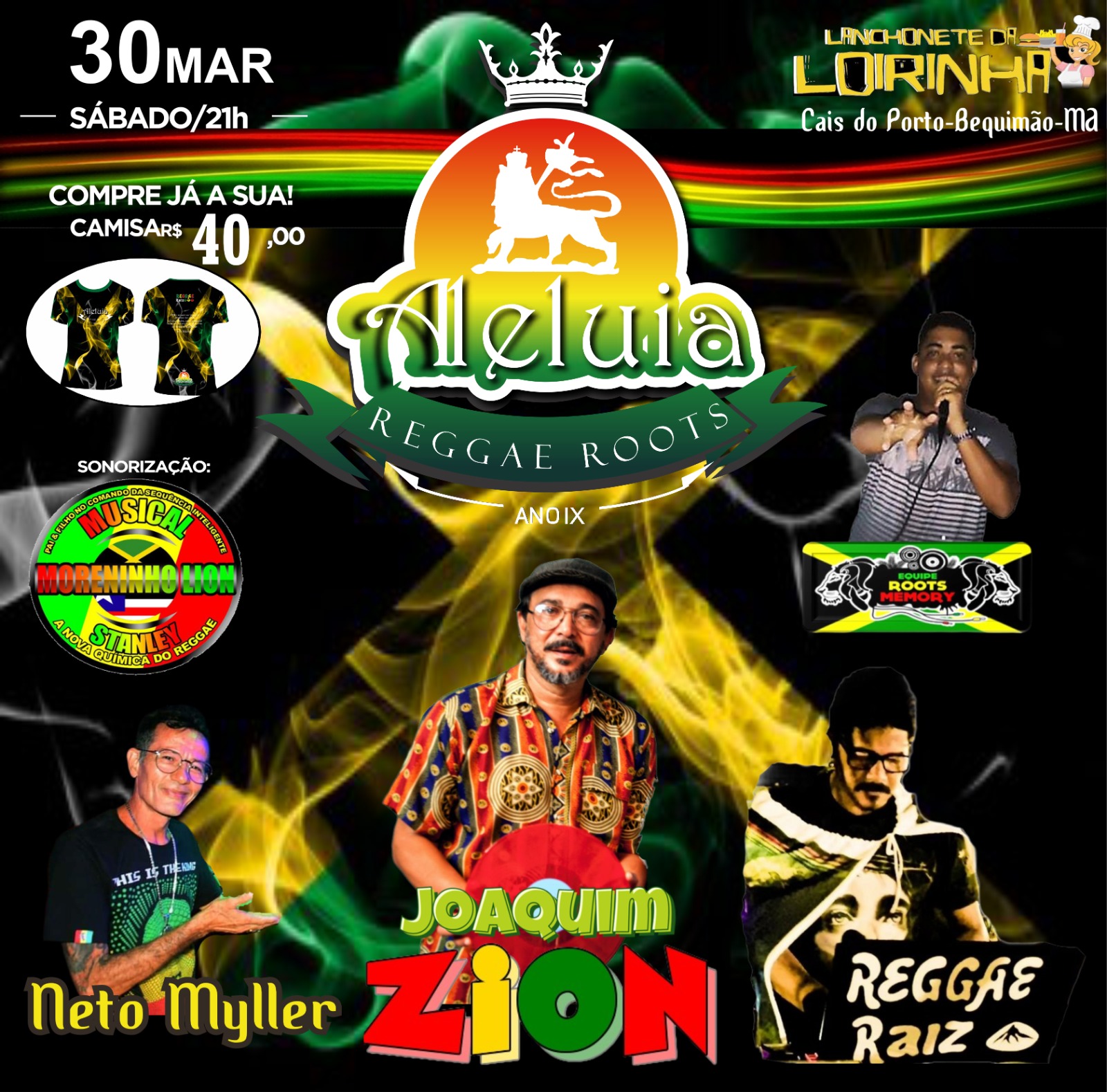 O ALELUIA REGGAE ROOTS – ANO IX, terá como atrações as equipes locais Reggae Raiz e Roots Memory; e de São Luís, a sequência do DJ Neto Myller e Joaquim Zion (Rádio Zion); tocando as pedras do passado e os new-roots do momento, em uma noite que promete sacudir a massa regueira de Bequimão e cidades vizinhas, no melhor point da Cidade, na Lanchonete da Loirinha, no Cais do Porto de Bequimão.