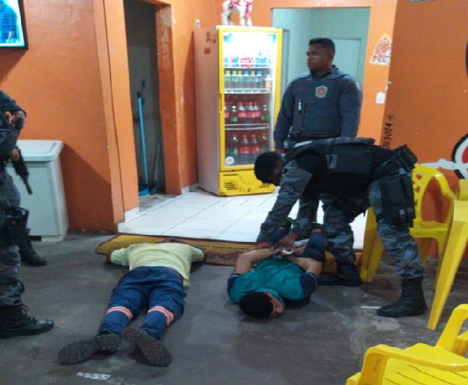 Polícias do 6° Batalhão de Polícia Militar do Estado do Maranhão, prenderam dois homens logo depois que eles haviam assaltado a lanchonete Gaby’s Lanches, localizada na Avenida Principal, do Conjunto Jardim América em São Luís.