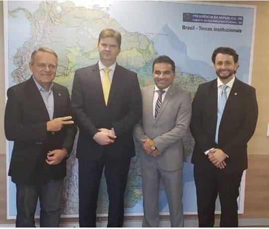 O deputado estadual Dr. Leonardo Sá acompanhou o deputado federal Josimar de Maranhãozinho em Brasília na tarde desta terça-feira (19), em reunião com o ministro do Desenvolvimento Regional, Gustavo Canuto. Outro deputado que esteve presente foi o veterano Hélio Soares, membro da banca do PR na Assembleia.