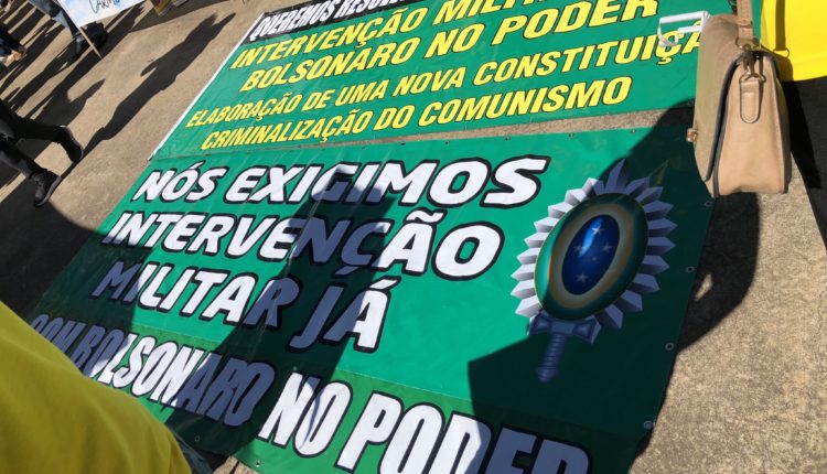 Em manifestação neste domingo (21) na Esplanada dos Ministérios, apoiadores do presidente Jair Bolsonaro exibem faixas e bandeiras com mensagens de teor antidemocrático, pedindo intervenção militar e elaboração de uma nova Constituição. Eles também defendem a criminalização do comunismo e fazem ataques ao Supremo Tribunal Federal (STF).