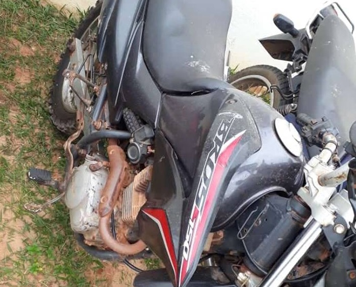 Ao consultar o chassi da motocicleta foi constatado que se tratava de um veículo roubado na cidade de Bacabal-MA e sua placa é OJP 1473. Mediante os fatos constatados, o veículo foi apresentado na Delegacia de Policia para as providências cabíveis.