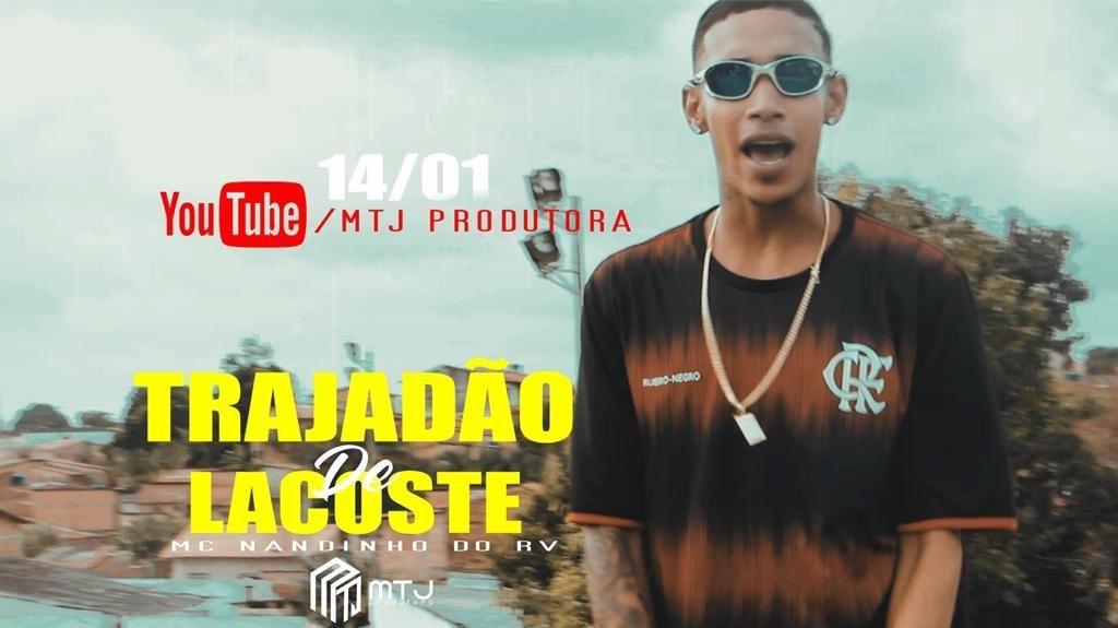 A MTJ Produtora, uma das agências de música que mais vem crescendo na cena em São Luís, lançou nesta sexta-feira (14/01), em seu canal oficial no YouTube, o clipe “Trajadão de Lacoste”, mais nova música de trabalho da produtora para este início de ano. Esta foi a sexta produção da agência e teve a interpretação de MC Nandinho do RV, grande aposta da produtora; o clipe foi produzido por Jefferson Benarck, com as mixagens dos DJ’s Rick BM e H Menor.