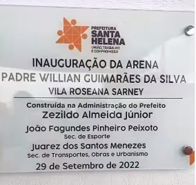 “Entregamos a Arena Padre Willian Guimarães da Silva, na Vila Roseana Sarney. Esse é mais um espaço de esporte e lazer que foi entregue em comemoração aos 87 anos de Santa Helena. A arena vai beneficiar toda a população e incentivar o interesse dos nossos jovens por atividades esportivas”, descreveu o prefeito Zezildo Almeida.