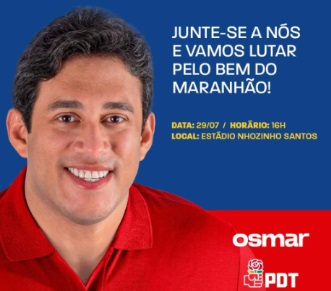 O presidente da Câmara Municipal de São Luís e pré-candidato a deputado estadual, vereador Osmar Filho, convidou seus amigos e correligionários para a convenção do Partido Democrático Trabalhista (PDT), que homologará o nome de Weverton Rocha para candidato ao Governo do Maranhão, nesta sexta-feira (29), no Estádio Nhozinho Santos, no Canto da Fabril, em São Luís. Veja abaixo o convite de Osmar Filho.