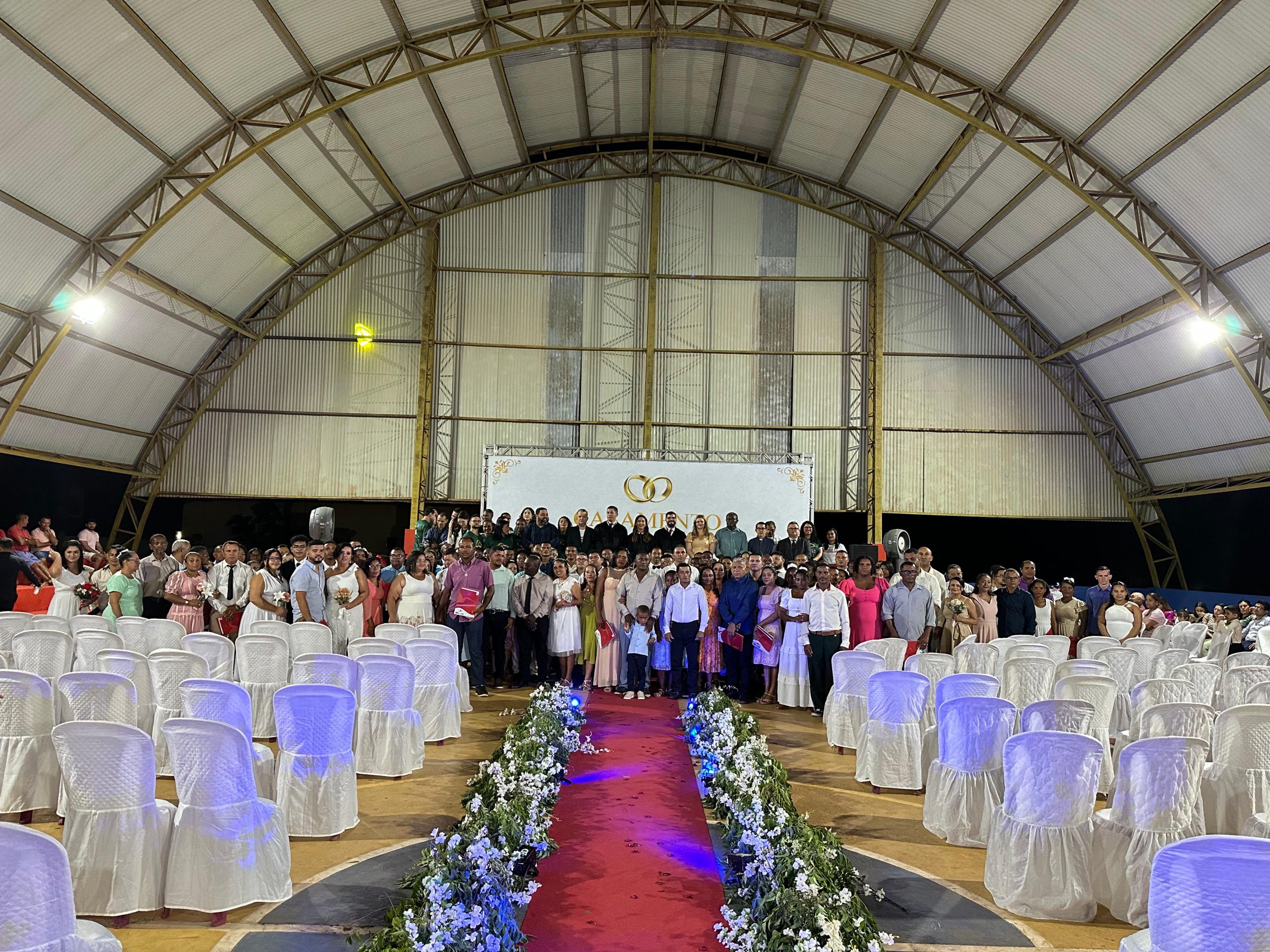 Uma parceria entre a Prefeitura de Bequimão, Tribunal de Justiça do Maranhão (TJMA), Cartório Extrajudiciário de Bequimão e o empresariado local, realizou a cerimônia do Casamento Comunitário nesta terça-feira (10), na Quadra Poliesportiva do Bairro Estiva, oficializando a união de 69 casais, que tiveram a oportunidade de dizer o tão sonhado “SIM” perante a justiça.