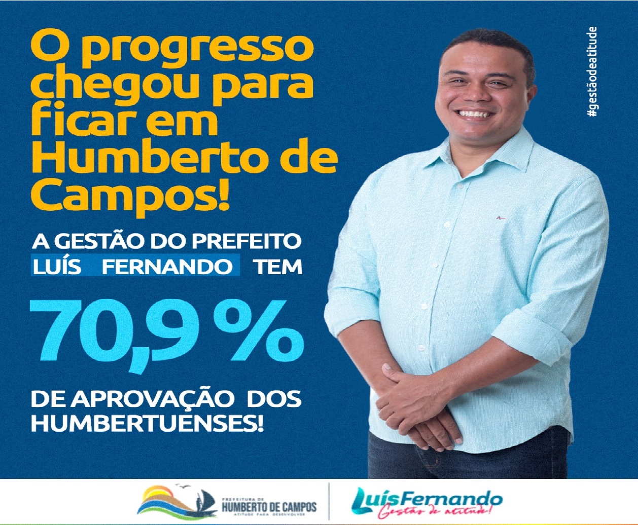 Que Humberto de Campos vive um novo tempo e uma nova história não é novidade para ninguém. Uma pesquisa feita recentemente aponta que 70,9% da população aprova a gestão do prefeito Luis Fernando, o que só confirma o que é visível aos olhos de quem mora ou visita à cidade, que desde janeiro 2021 tem à frente um gestor que está transformando o município e melhorando a qualidade de vida dos Humbertuenses.