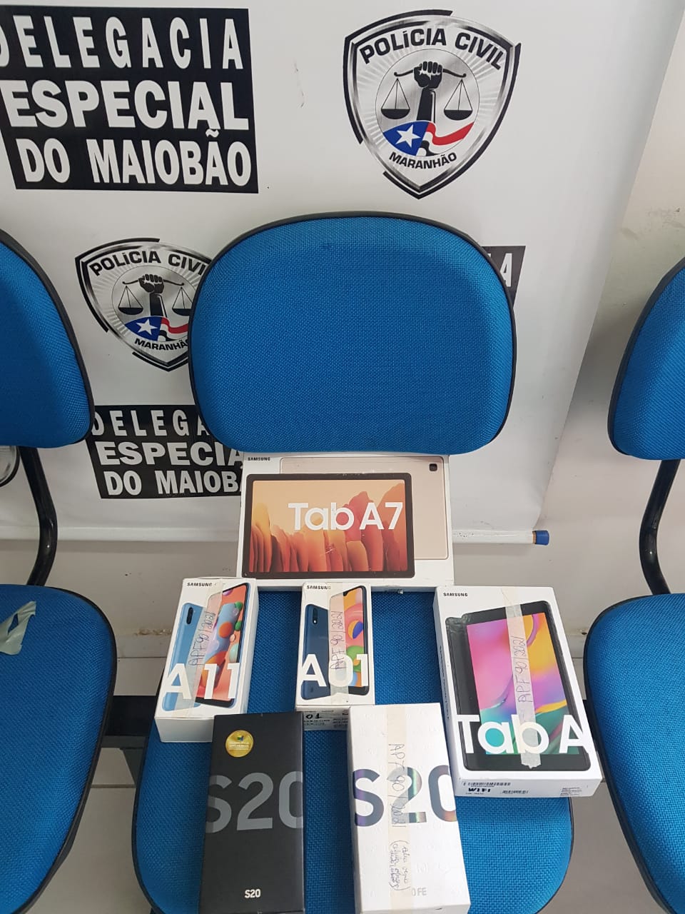 Com os acusados a polícia apreendeu os tabletes e os aparelhos de telefone celular roubados em São Luís-MA.