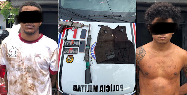 As prisões ocorreram na Rua Principal, na Vila Funil, nas proximidades da tubulação da Caema. O presos foram identificados como G. L. Pereira, de 25 anos, residente na Rua Santo Antônio, Vila Funil; e H. V. P. Silva, de 23 anos, residente na Rua principal, também na Vila Funil.