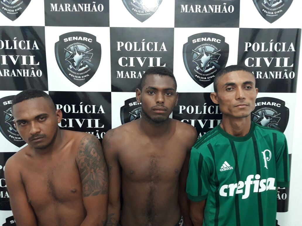 Dando continuidade às ações de repressão ao narcotráfico, a Polícia Civil do Maranhão, por meio da Senarc, unidade de Timon, com apoio da Delegacia Regional de Homicídios, efetuou na manhã de hoje (3), por volta das 11 horas, a prisão, em flagrante, dos indivíduos Adriano Ribeiro da Costa, 27 anos, Aligson Nascimento Amorim, 19 anos, e Francinaldo Neves de Sousa, 37 anos, todos surpreendidos pela equipe da Senarc quando vendiam crack no interior de uma casa, situada na Avenida Belo Horizonte, no Bairro Planalto Formosa, em Timon.