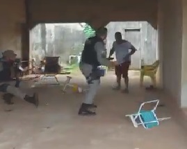 O vídeo, que segundo internautas teria sido gravado em Acrelândia, no interior do Acre, mostra o homem suspeito entrando em uma casa. Logo atrás, os militares correm na tentativa de interceptá-lo. Bastante irritado, o homem reage com um cabo de vassoura nas mãos e dá uma “surra” nos dois policiais.
