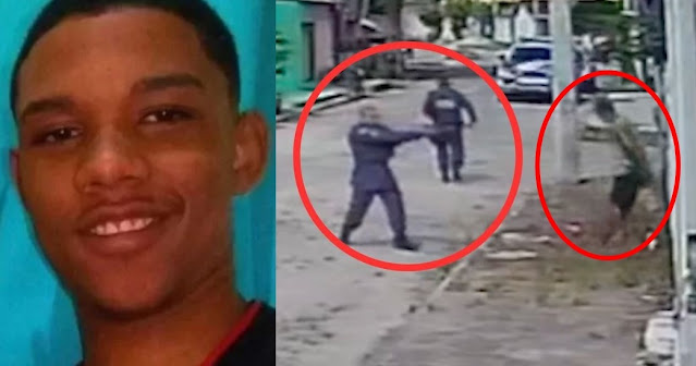 Um vídeo da câmera de segurança da rua mostra o momento em que um dos policiais dispara contra o adolescente