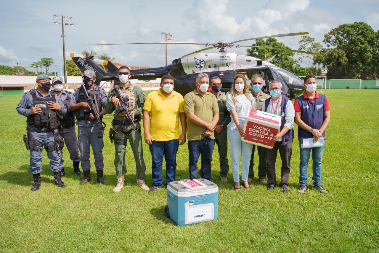 A entrega das doses ocorreu no Estádio Costa Rodrigues e foi feita pelo gestor Regional de Saúde de Pinheiro, Janderson Gusmão, e pelo coordenador estadual das Regionais de Saúde, Aristeu Marques de Almeida. As vacinas chegaram em uma aeronave do Centro Tático Aéreo (CTA).