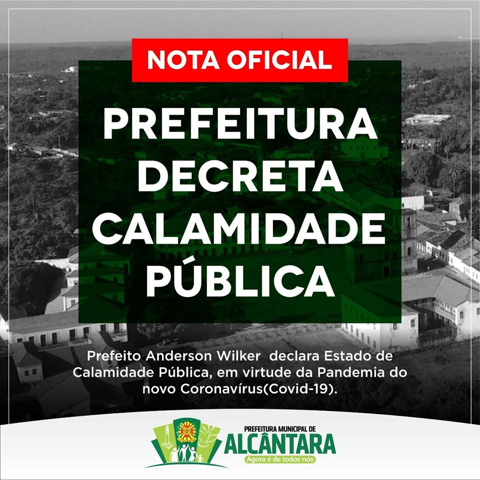 Após a Organização Mundial da Saúde (OMS) declarar situação de pandemia global do coronavírus (COVID-19) e dos casos que o Maranhão já confirmou da doença nos últimos dias, o prefeito Anderson Wilker decretou Calamidade Publica no município, haja vista que Alcântara e uma cidade turística e recebe visitantes do mundo inteiro.