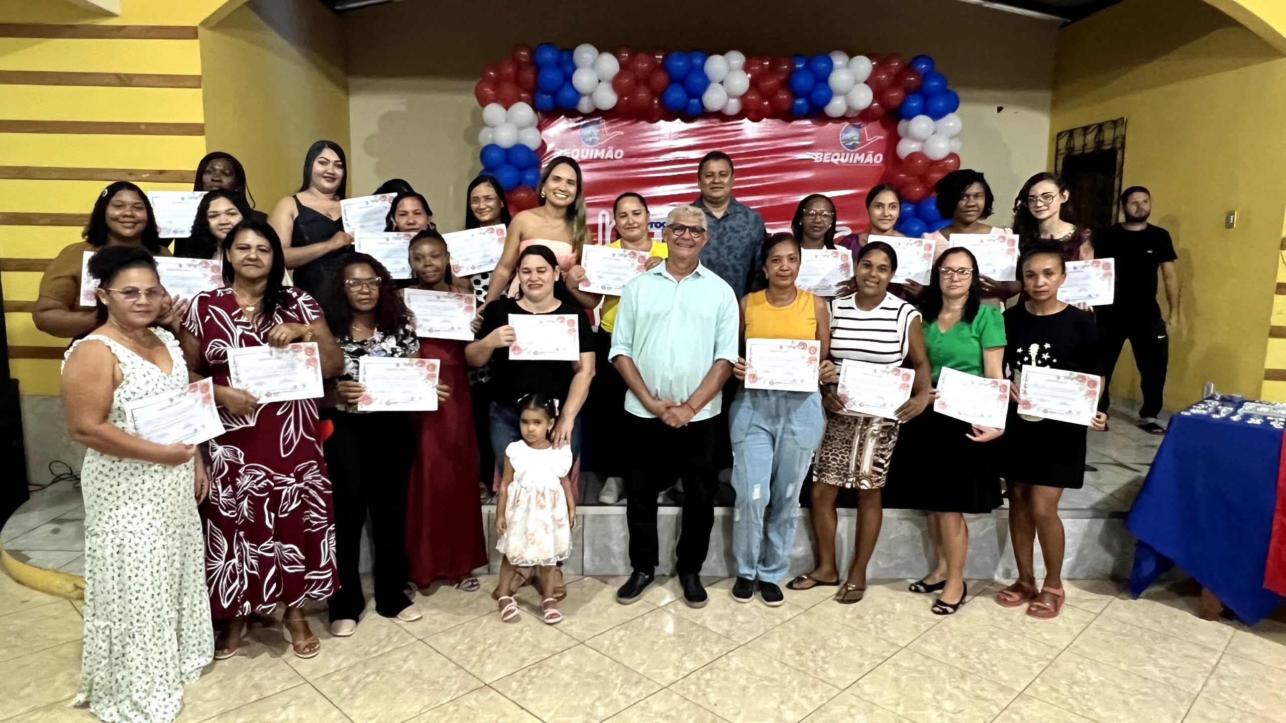 A cerimônia de encerramento e entrega dos certificados aconteceu na última sexta-feira (8), no Salão Paroquial de Bequimão, e contou com a presença do prefeito Zé Martins e dos secretários municipais de Assistência Social, Sidney Nogueira (Magal), e de Planejamento, Suziane Lobato.