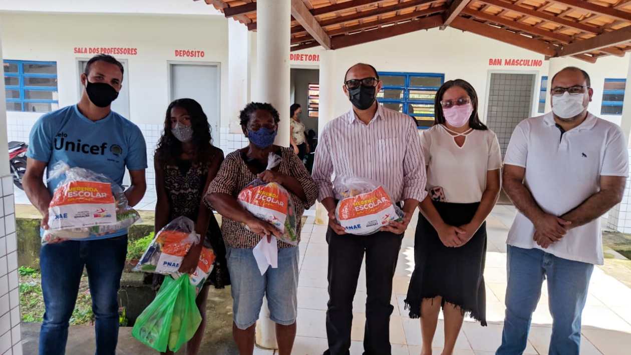 A Prefeitura de Bequimão, por meio da Secretaria Municipal de Educação, iniciou na manhã desta segunda-feira (12) a entrega de 3.243 cestas básicas a estudantes bequimãoenses e suas famílias, como parte das ações do programa “Merenda Escolar em Casa”. A distribuição dos produtos alimentícios aconteceu simultaneamente em cinco escolas da Rede Municipal de Ensino. Os itens foram adquiridos via recursos do Programa Nacional de Alimentação Escolar (PNAE), do Ministério da Educação.