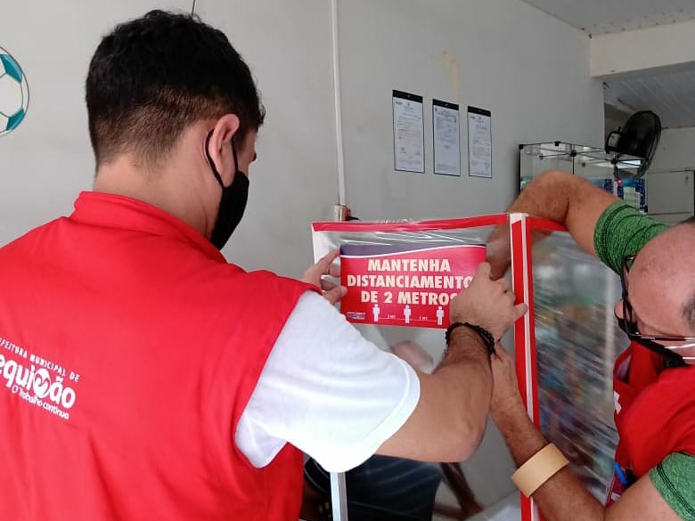 Durante a ação, também foram fixadas placas nas partes interna e externa dos estabelecimentos. O objetivo é reforçar as orientações de segurança sanitária a serem seguidas por funcionários e clientes, no horário de funcionamento das lojas.