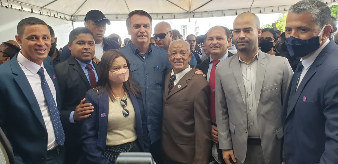 O presidente da Câmara Municipal de Alcântara, vereador Guterres Filho, foi uma das autoridades alcantarenses convidadas para recepcionar o presidente Jair Bolsonaro, nesta quinta-feira (11), em cerimônia realizada no Centro de Lançamento para entrega de 125 títulos de propriedade às famílias remanejadas na época da criação do CLA (Centro de Lançamento de Alcântara), na década de 1980.