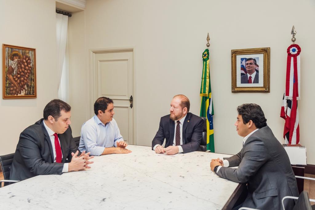 O governador em exercício do Maranhão, deputado Othelino Neto (PCdoB), recebeu a visita de cortesia do prefeito de São Luís, Edivaldo Holanda Júnior (PDT), e do presidente da Câmara Municipal, vereador Osmar Filho (PDT), nesta quinta-feira (16), no Palácio dos Leões. O secretário de Estado de Comunicação Social e Assuntos Políticos, Rodrigo Lago, também acompanhou a visita.