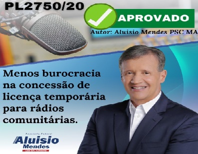 A Câmara dos Deputados aprovou nesta terça-feira (5) o projeto de lei de autoria do deputado federal Aluísio Mendes, que permite a concessão de licença temporária de operação, por 180 dias, para rádios comunitárias submetidas a medidas disciplinares de restrição de operação, suspensão ou revogação da autorização. A matéria será enviada ao Senado.