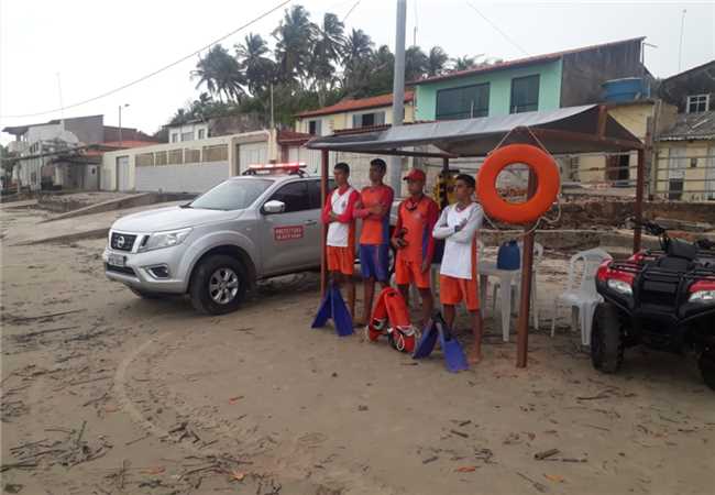 Homens voluntários participam do projeto de guarda-vidas que teve início no último fim de semana, em quatro praias de São José de Ribamar-MA, localizado na Região Metropolitana da Grande Ilha. O trabalho consiste em orientação aos banhistas e salvamento aquático.