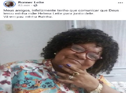 Morreu nas primeiras horas deste sábado (30), a radialista cultural, Helena Leite. A informação foi divulgada pelo seu filho Ronnie Leite, através da rede social Facebook. De acordo com informações de amigos, a boeira passou mal no final da noite desta sexta-feira (29), ainda foi levada pra UPA no vinhais, mas faleceu. Ela estava com a saúde debilitada, chegando a realizar semanalmente sessões de hemodiálise.