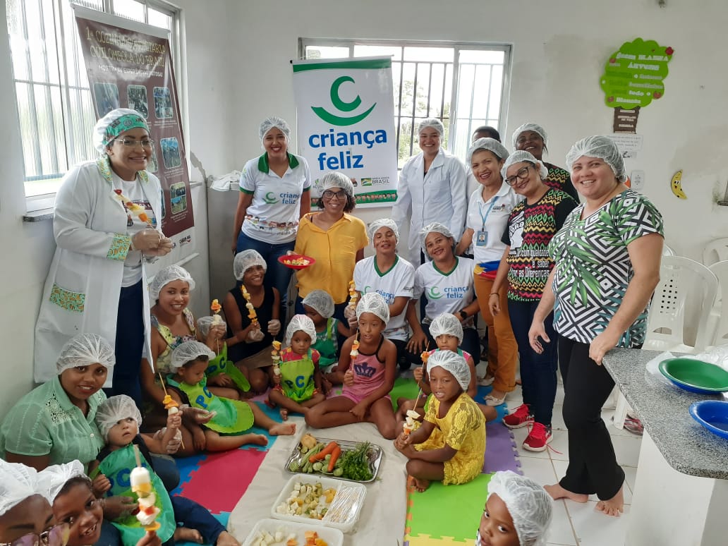 Na integralidade com outras políticas, o programa realizou na Cozinha Comunitária Quilombola do povoado Marudá brincadeiras de educação alimentar e nutricional juntamente com as mães e filhos na qual foi possível fortalecer os vínculos familiares com a produção do churrasquinho de frutas regionais para estímulo de hábitos alimentares saudáveis e preservar os saberes tradicionais desde a primeira Infância.