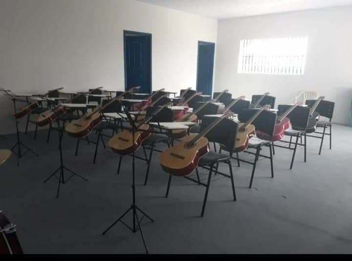 Cada município está recebendo doação de mobiliários (87 itens, entre armários, cadeiras, mesas, estantes, ventilador, bebedouro quadro branco, além de livros e partituras) e instrumentos musicais (80 itens, entre violões, baixo, bateria, clarinete, flauta doce barroca, guitarras, sax, trompete e outros itens), para implantação de escolas de música em parceria com a prefeitura municipal.