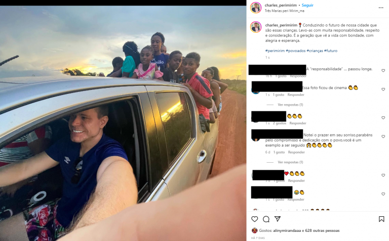 Na publicação, que chegou a ser patrocinada, o vereador afirma que está conduzindo o “futuro da cidade” com “responsabilidade”, mesmo cometendo um crime e colocando em risco a vida de crianças. “Conduzindo o futuro de nossa cidade que são essas crianças. Levo-as com muita responsabilidade, respeito e consideração. É a geração que vê a vida com bondade, com alegria e esperança”, escreveu.