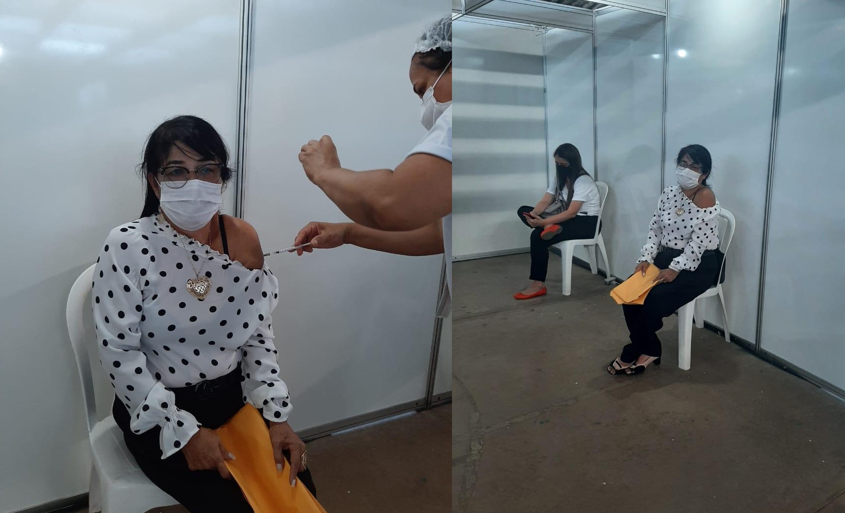 A vereadora de São Luís, Fátima Araújo (PCdoB), recebeu a segunda dose da vacina Pfizer contra a Covid-19, na tarde desta segunda-feira (16), no Centro Municipal de Imunização, localizado no Multicenter Sebrae, no bairro Cohafuma.
